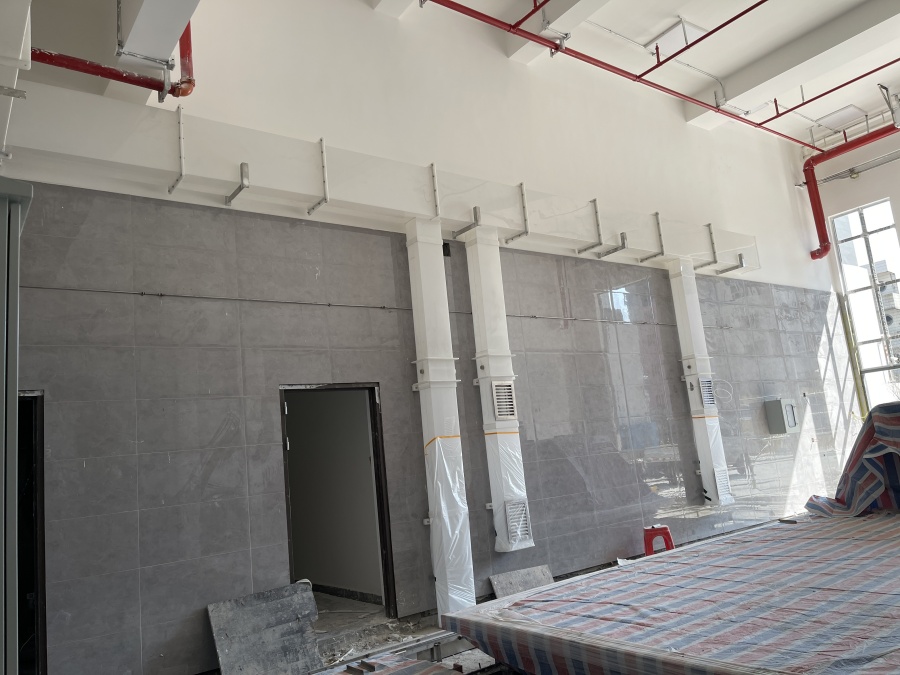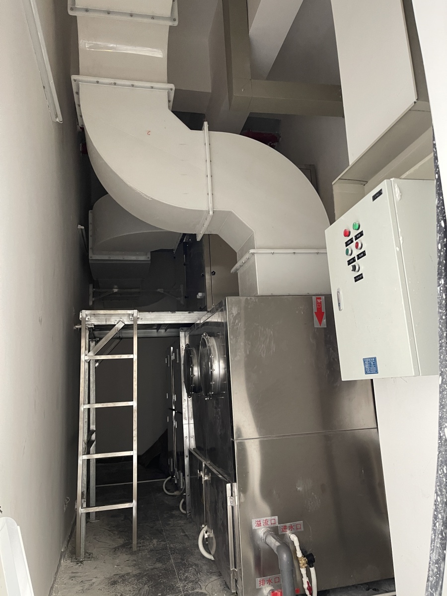 在室內(nèi)安裝集氣罩、風(fēng)管,臭氣在動(dòng)力系統(tǒng)抽風(fēng)機(jī)的作用下,經(jīng)抽風(fēng)口送入后端的高效一體化噴淋除臭設(shè)備;廢氣首先通過(guò)噴淋段將溶于水的惡臭物質(zhì)吸收,再通過(guò)脫水區(qū)將顆粒狀態(tài)的水霧攔截為后續(xù)處理創(chuàng)造條件;經(jīng)脫水后的廢氣經(jīng)過(guò)紫外線燈管殺菌區(qū)對(duì)廢氣內(nèi)漂浮的致病細(xì)菌殺滅處理,殺菌后的廢氣經(jīng)過(guò)活性氧離子發(fā)生區(qū),將廢氣中的氧分子轉(zhuǎn)化為活性氧離子,通過(guò)活性氧離子來(lái)氧化分解有機(jī)惡臭物質(zhì),為了加強(qiáng)氧化反應(yīng)效果,在設(shè)備后端設(shè)計(jì)氧化反應(yīng)區(qū),通過(guò)多工藝組合的方式,使惡臭物質(zhì)不斷的降解而達(dá)到凈化達(dá)標(biāo)排放目的。